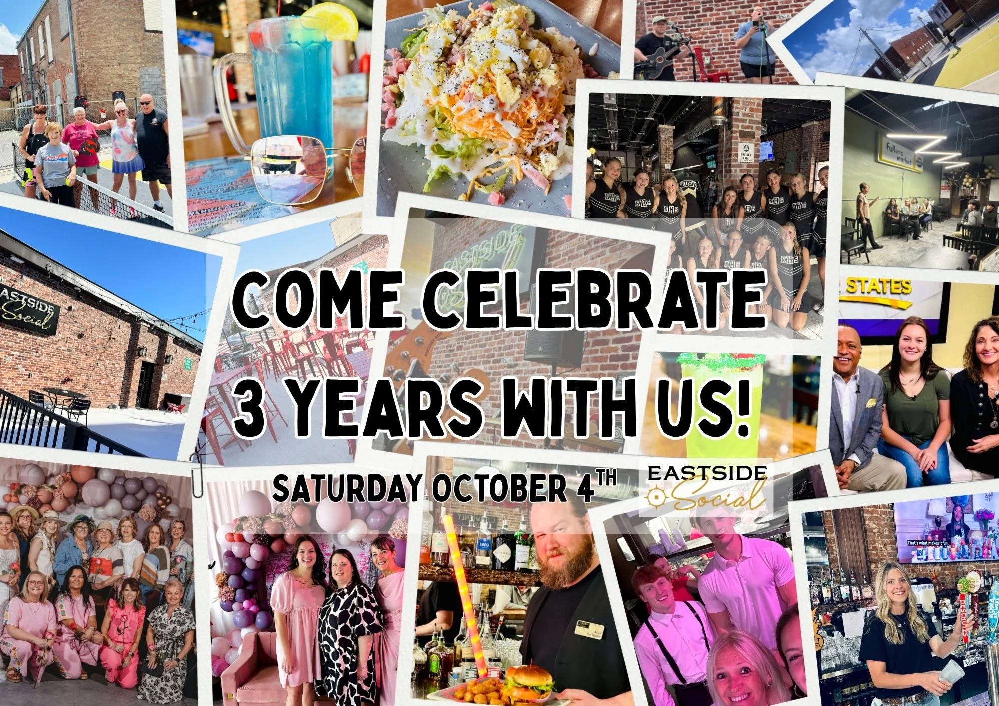 Back to All Events 3 Years of Eastside Social Saturday, October 4, 2025 11:00 AM 9:00 PM Eastside Social 113 South Washington Street Neosho, MO, 64850 United States (map) Google Calendar ICS